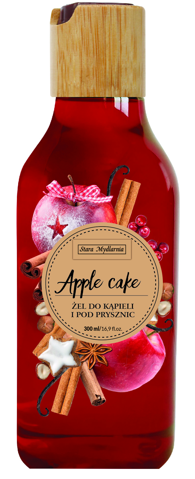 Aromatyczny żel do kąpieli i pod prysznic zachwyca niepowtarzalnym zapachem pieczonej szarlotki i budzi najsłodsze wspomnienie z dzieciństwa. Przyrządzony na bazie wyjątkowo łagodnych substancji myjących pochodzenia roślinnego delikatnie oczyszcza i odświeża skórę. Zawarty w nim pełen witamin ekstrakt z jabłek działa antyoksydacyjnie, wygładza skórę i pobudza ją do regeneracji, pantenol koi podrażnienia, a gliceryna roślinna intensywnie nawilża.
