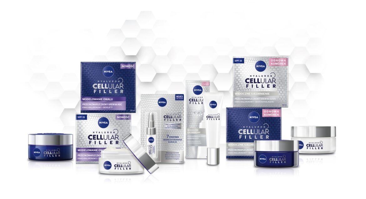 Z upływem czasu skóra twarzy traci naturalne pokłady kolagenu, przez co staje się mniej napięta, traci swą objętość, a kontur twarzy rozmywa się. Jednak jak potwierdzają dowody naukowe, aktywność komórek skóry może być ponownie pobudzona. Z pomocą przychodzą dwa nowe przeciwzmarszczkowe kremy na dzień i na noc z kultowej linii NIVEA HYALURON CELLULAR FILLER, która odpowiada na wszystkie potrzeby dojrzałej skóry. Nowość zawiera połączenie dwóch składników aktywujących komórki skóry: kwasu hialuronowego oraz opatentowanego przez NIVEA kompleksu BIOXILIFT.