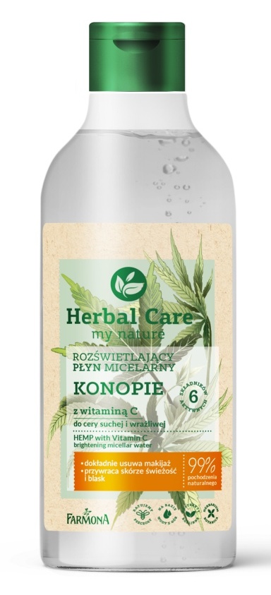 HERBAL CARE Rozświetlający płyn micelarny KONOPIE z witaminą C: 17,99 zł/ 400 ml