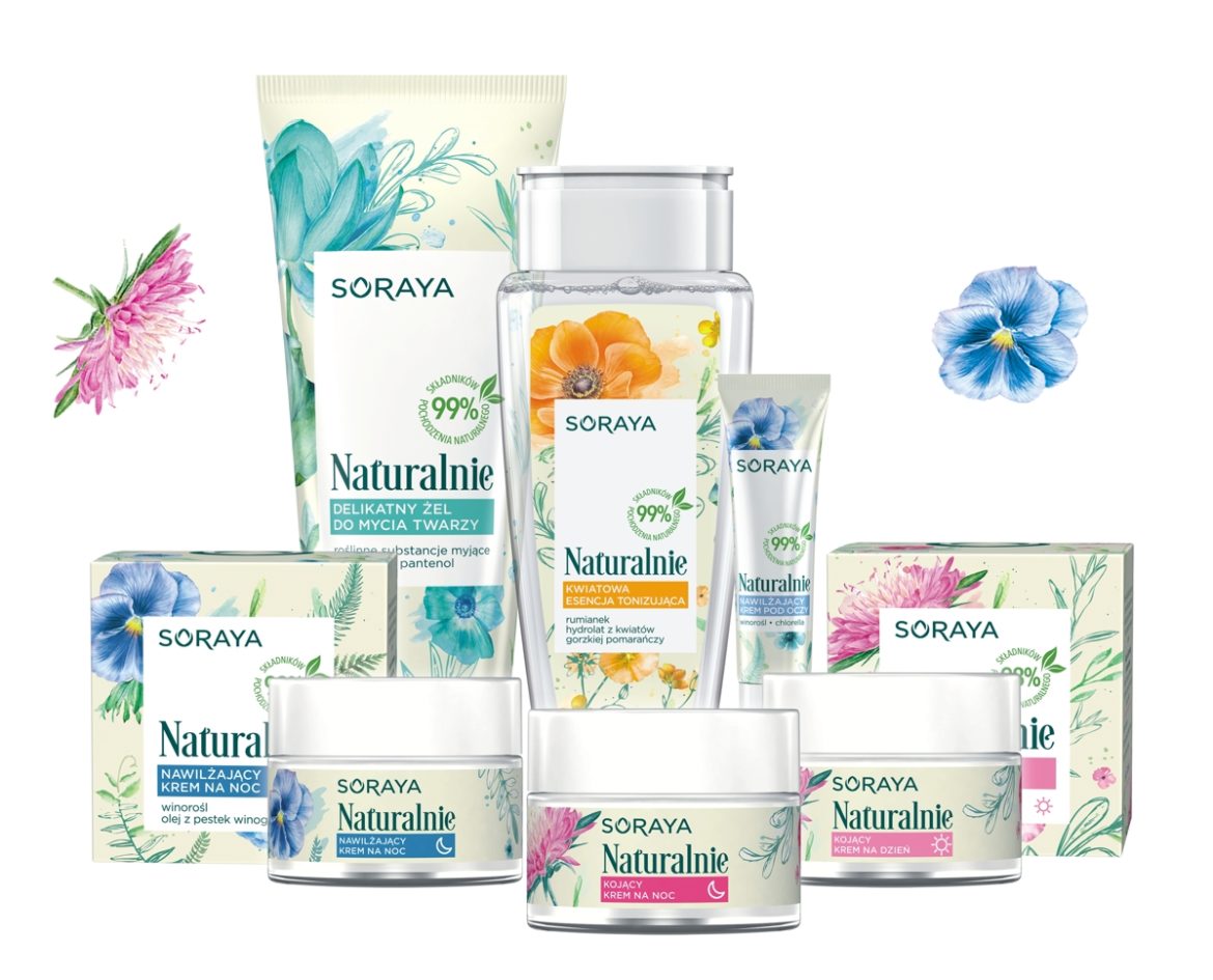 Soraya Naturalnie to najnowsza linia kosmetyków pielęgnacyjnych do twarzy, celebrująca kobiecość niezależnie od wieku, miejsca zamieszkania czy zawodu. W linii znajdują się kosmetyki do oczyszczenia i nawilżenia twarzy.