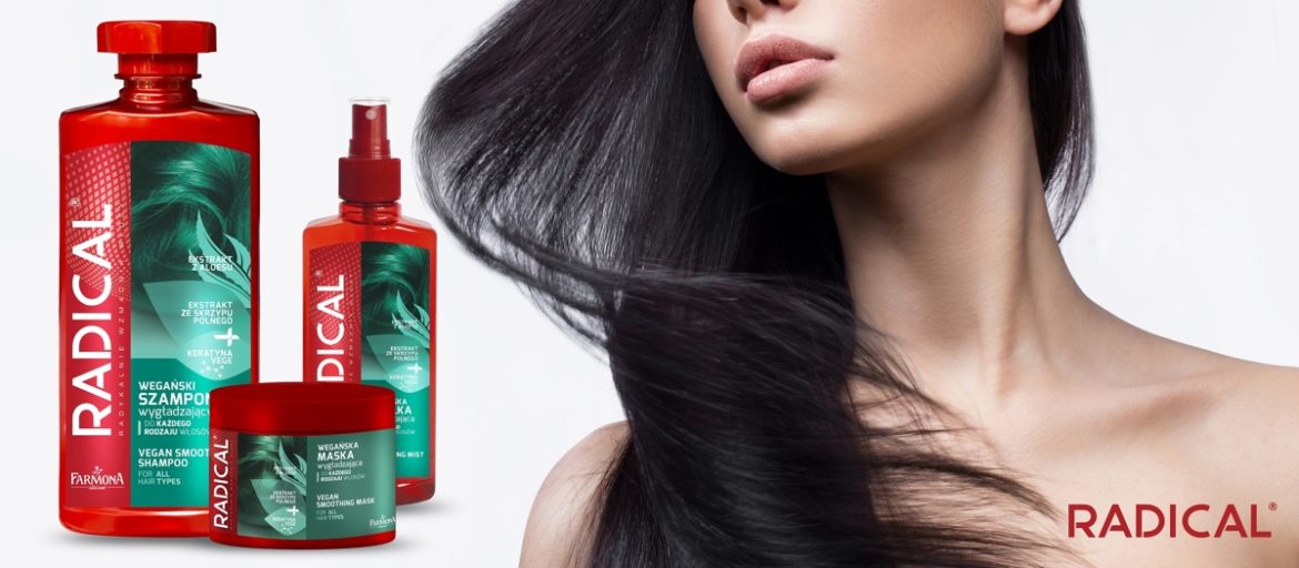 Skuteczność skrzypu polnego, z którego słynie RADICAL®, a do tego keratyna vege, ekstrakt z aloesu oraz oliwka z oliwek – tak wygląda nowa propozycja marki dla fanów wegańskiej pielęgnacji włosów! Ta wyjątkowa linia innowacyjnych produktów bogatych w roślinne składniki aktywne stanowi idealny sposób na poprawę wyglądu i kondycji każdego rodzaju włosów w przyjaźni z naturą. W najnowszej linii RADICAL® znajdziemy szampon, wygodną mgiełkę oraz keratynową maskę dla komplementarnej pielęgnacji.